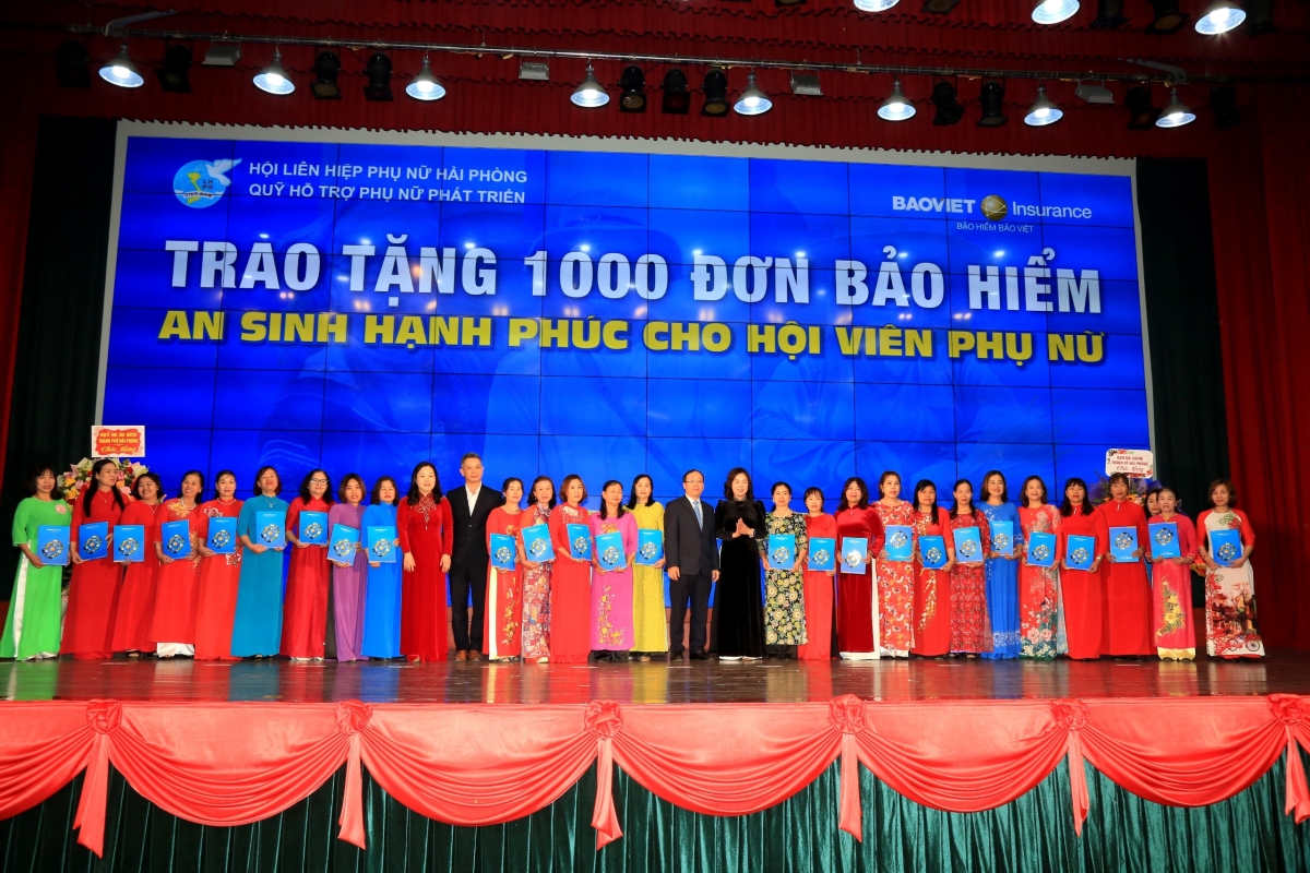Quỹ Hỗ trợ phụ nữ phát triển Hội Liên hiệp phụ nữ thành phố phối hợp với Bảo hiểm Bảo Việt - Công ty Bảo Việt Hải Phòng trao tặng 1000 đơn bảo hiểm “An sinh hạnh phúc” cho 1.000 tổ trưởng và thành viên vay vốn Quỹ Hỗ trợ PNPT có hoàn cảnh khó khăn trên địa bàn thành phố, trị giá 146 triệu đồng (trong đó, Quỹ Hỗ trợ PNPT : 700 đơn bảo hiểm, Bảo hiểm Bảo Việt: 300 đơn bảo hiểm)