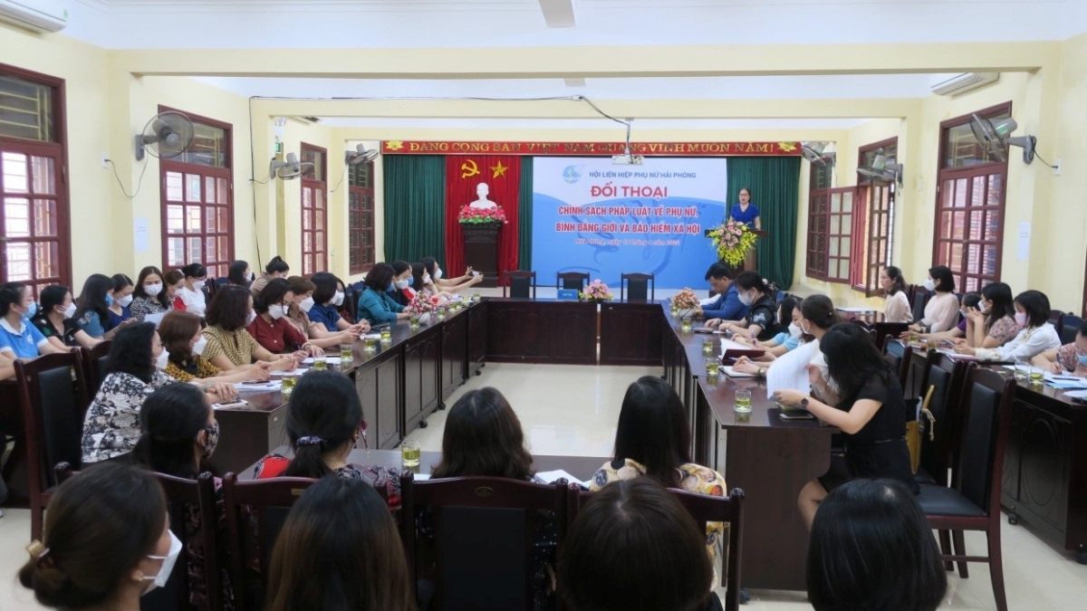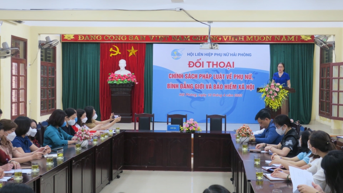 Sáng ngày 15/4/2022, Ban Thường vụ Hội Liên hiệp Phụ nữ Thành phố tổ chức Đối thoại chính sách pháp luật về Phụ nữ, bình đẳng giới và Bảo hiểm xã hội. Tham dự Hội nghị có các đồng chí Vũ Thị Kim Liên – UVBCH Trung ương Hội LHPN VN, Thành ủy viên, Chủ tịch Hội LHPN thành phố; Đ/c Đặng Thị Hà - Trưởng phòng Hành chính – Tư pháp Sở Tư Pháp, Đ/c Tô Nhật Thành – Phó trưởng phòng truyền thông phát triển đối tượng BHXH Thành phố.