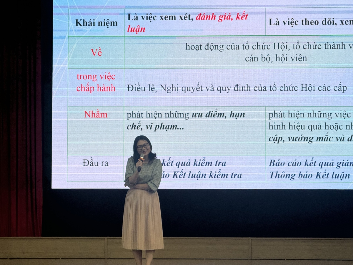 Nhiệm kỳ 2021-2026 là nhiệm kỳ đầu tiên, Đoàn Chủ tịch Trung ương Hội LHPN Việt Nam chỉ đạo thành lập Ủy ban Kiểm tra Hội LHPN các cấp. Trong quá trình thực hiện, hoạt động của Ủy ban Kiểm tra Hội LHPN các cấp còn gặp hạn chế về kỹ năng kiểm tra, giám sát, thi hành kỷ luật, giải quyết khiếu nại tố cáo; lúng túng trong tham mưu thực hiện quy trình kỷ luật. Lớp tập huấn giúp cán bộ làm công tác kiểm tra Hội các cấp tiếp cận những nội dung chuyên sâu kết hợp với kinh nghiệm thực tế, từ đó, áp dụng vào thực tiễn hoạt động, đưa vai trò, vị thế và chất lượng hoạt động của tổ chức Hội nói chung và hoạt động Ủy ban Kiểm tra Hội LHPN các cấp nói riêng ngày càng nâng lên.