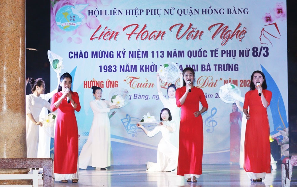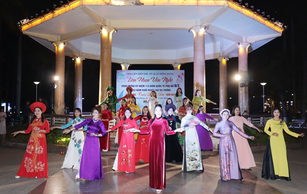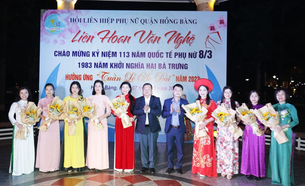 Tối 7/3, tại Nhà Kèn - Dải trung tâm thành phố, Hội LHPN quận Hồng Bàng tổ chức “Liên hoan văn nghệ” chào mừng kỷ niệm 113 năm ngày Quốc tế phụ nữ (8/3/1910 - 8/3/2023), 1983 năm khởi nghĩa Hai Bà Trưng và hưởng ứng “Tuần lễ áo dài” do Trung ương Hội LHPN Việt Nam phát động. Tới dự có các đồng chí: Nguyễn Thị Thúy Hồng, Phó Chủ tịch Thường trực Hội LHPN thành phố; Đỗ Việt Hưng, Phó Bí thư Thường trực Quận ủy, Chủ tịch HĐND quận và đông đảo Nhân dân.