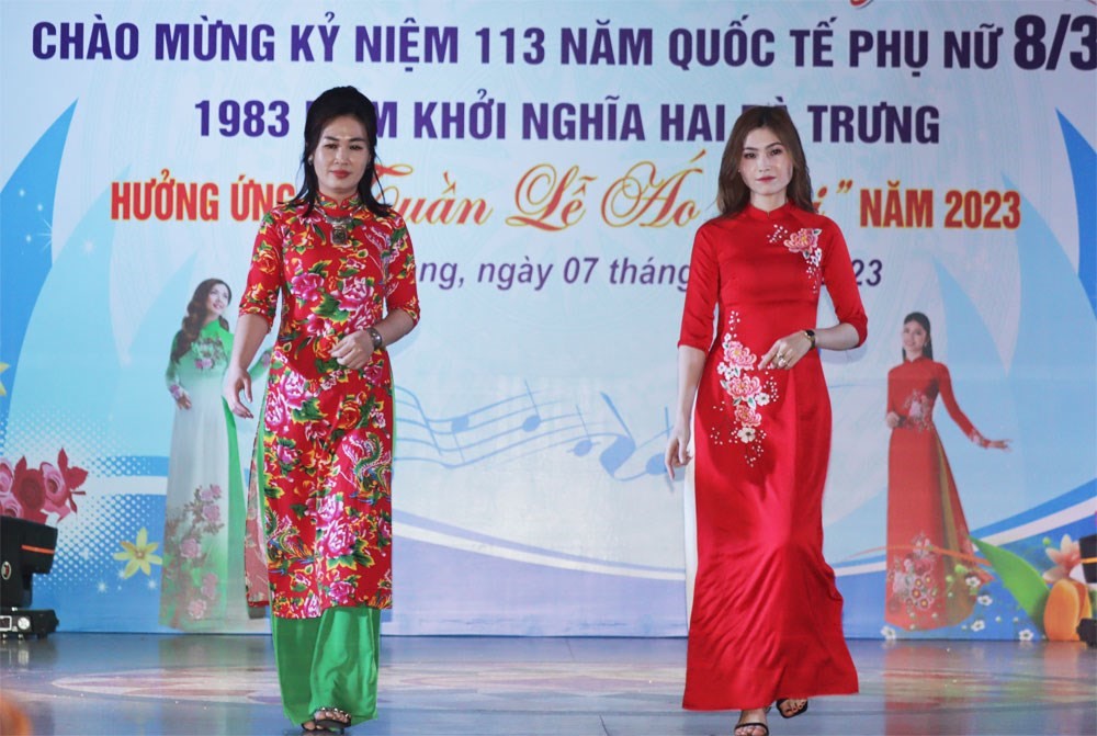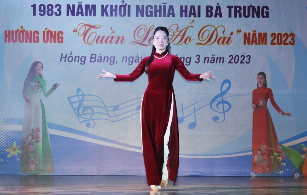 Phần trình diễn áo dài của cán bộ, hội viên phụ nữ quận Hồng Bàng