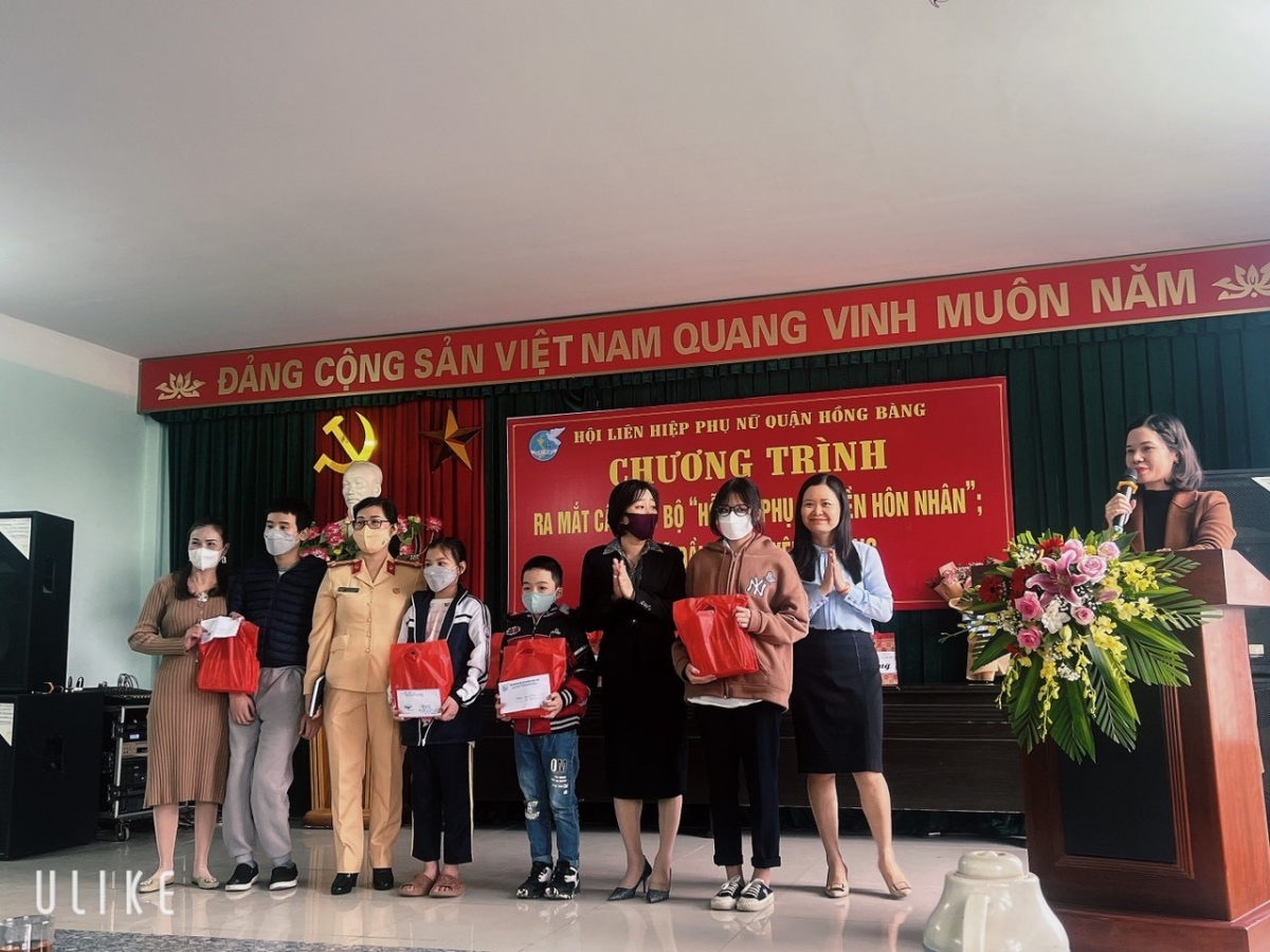 Sáng ngày 2/4/2022, Hội LHPN quận Hồng Bàng tổ chức ra mắt Mô hình “Câu lạc bộ hỗ trợ phụ nữ tiền hôn nhân”; Mẹ đỡ đầu - Trao yêu thương. Tới dự Hội nghị có đ/c Trần Thị Thu – Phó Chủ tịch Hội LHPN thành phố, đ/c Nguyễn Thị Thanh Vân – Trưởng ban Dân vận Quận ủy, Chủ tịch UBMTTQ Việt Nam quận Hồng Bàng, các đ/c Ủy viên BCH Hội LHPN quận, các thành viên Câu lạc bộ Hỗ trợ phụ nữ tiền hôn nhân và các cháu mồ côi có hoàn cảnh khó khăn.