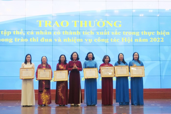 Hội LHPN thành phố Hải Phòng trao bằng khen cho các tập thể, cá nhân có thành tích xuất sắc trong thực hiện phong trào thi đua và nhiệm cụ công tác Hội năm 2022