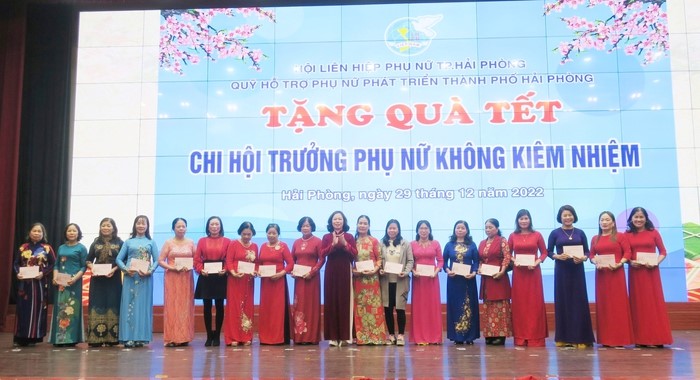 Điểm nhấn trong Chương trình tổng kết công tác Hội và phong trào phụ nữ năm 2022, triển khai phương hướng nhiệm vụ năm 2023 của Hội LHPN Hải Phòng là hoạt động trao quà cho đội ngũ chi hội trưởng không kiêm nhiệm nhân dịp Tết Quý Mão.