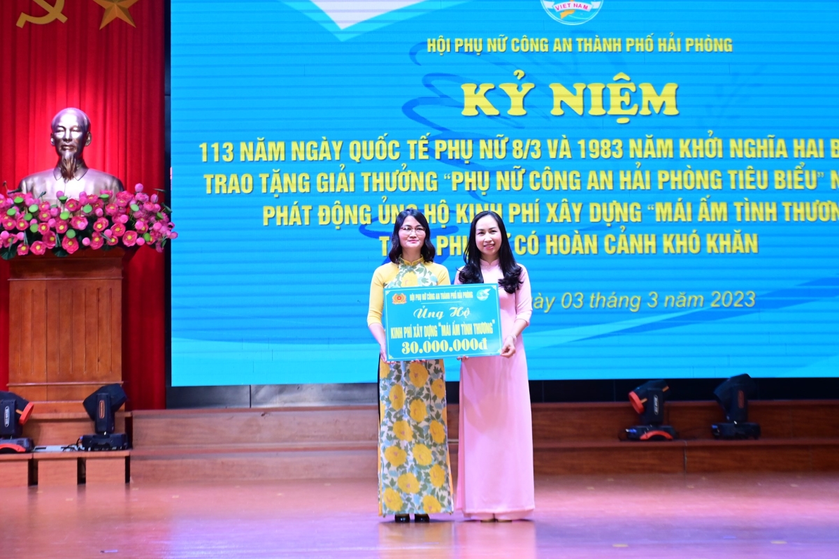 Ngày 3/3/2023, Hội Phụ nữ CATP tổ chức Chương trình kỷ niệm 113 năm Ngày Quốc tế phụ nữ 8-3, 1983 năm Khởi nghĩa Hai Bà Trưng; trao tặng Giải thưởng “Phụ nữ Công an Hải Phòng tiêu biểu" năm 2022; Phát động ủng hộ kinh phí xây dựng “Mái ấm tình thương" tặng phụ nữ có hoàn cảnh khó khăn.